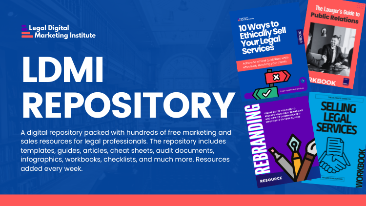 A digital repository packed with hundreds of free marketing and sales resources for legal professionals. The repository includes templates, guides, articles, cheat sheets, audit documents, infographics, workbooks, checklists, and much more. Resources added every week.
